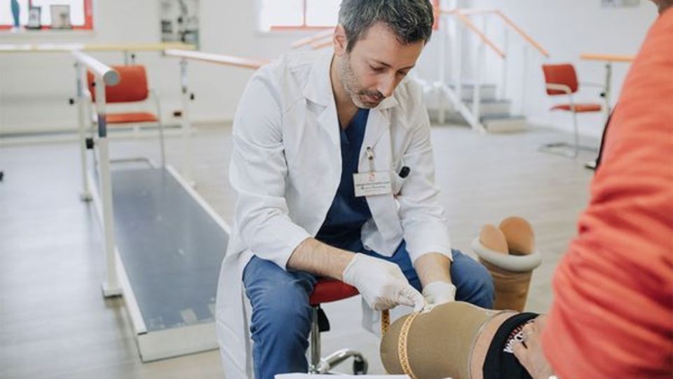 Per rendere il riassorbimento dell’edema più veloce, il paziente dovrà indossare una fasciatura elastica contenitiva che avrà anche la funzione di modellare il moncone, ovvero fargli raggiungere una forma che permetta il confezionamento e l’applicazione della protesi. L’applicazione del bendaggio dovrà essere graduale: all’inizio per un’ora, fino ad arrivare a tutta la giornata e, successivamente, ogni qualvolta non indossi la protesi.